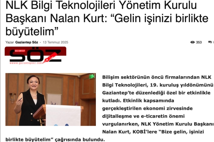 | Gaziantep Söz: NLK Bilgi Teknolojileri Yönetim Kurulu Başkanı Nalan Kurt: “Gelin işinizi birlikte büyütelim” |