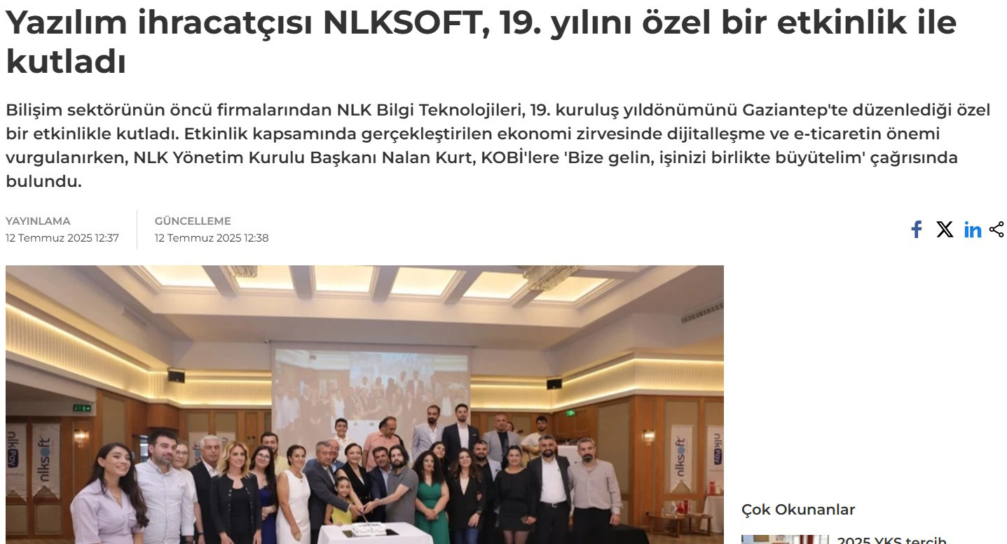 | GazeteEkonomi: NLKSOFT 19. Yaşını Kutladı, "İşinizi Birlikte Büyütelim" Mesajı Verdi |