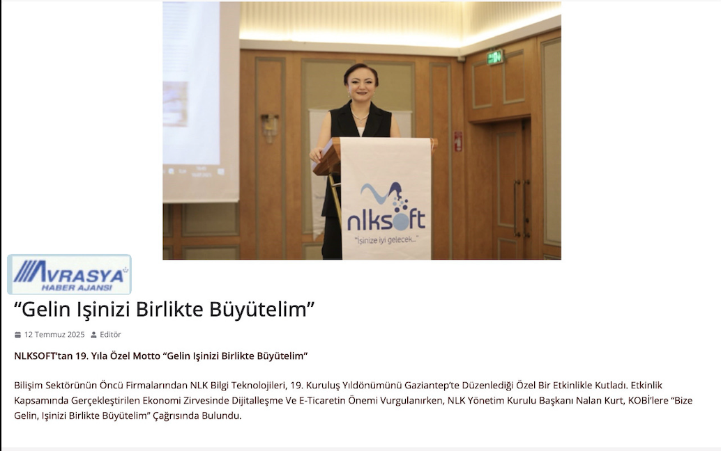 | gazeteekonomi: NLKSOFT’tan 19. Yıla Özel Motto: “Gelin İşinizi Birlikte Büyütelim” |
