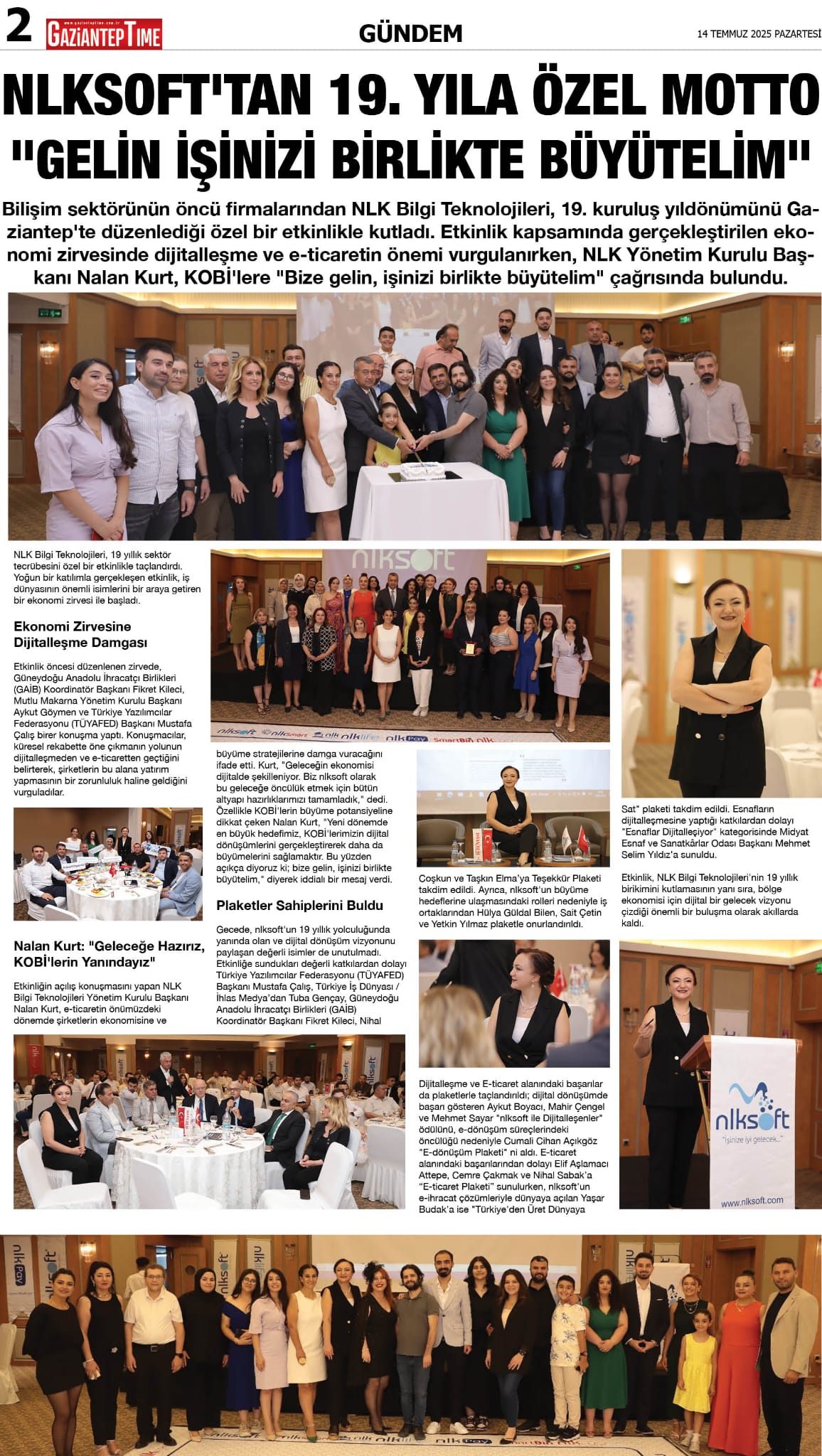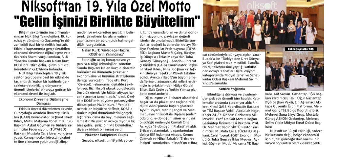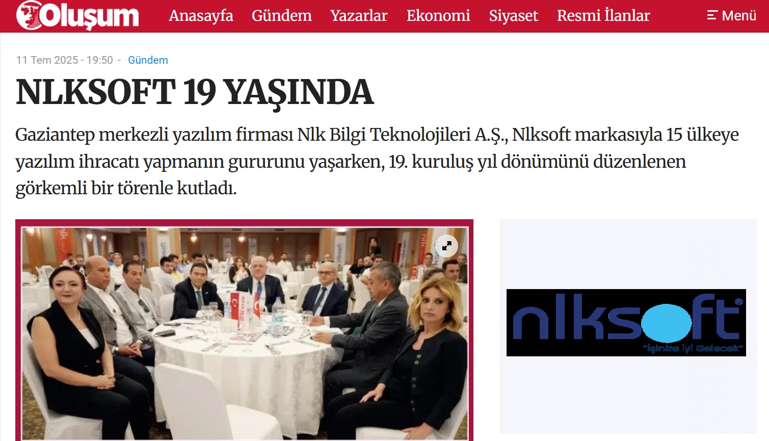 | Oluşum Gazetesi: NLKSOFT 19. Yılını Kutladı, “Gaziantep’ten Dünyaya Teknoloji” Mesajı |